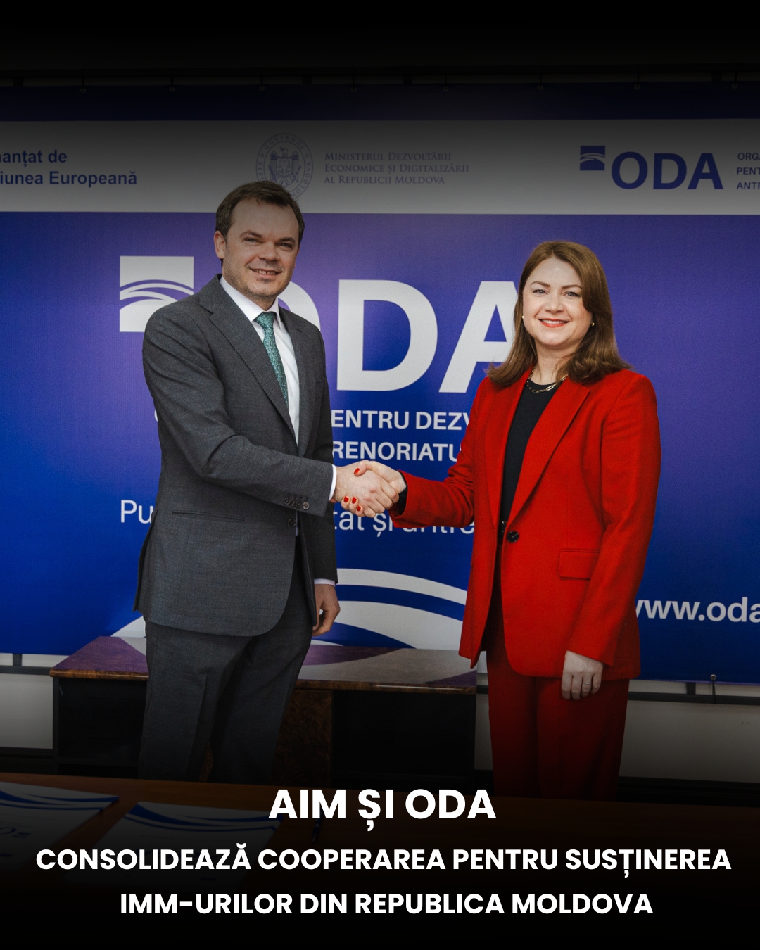 30 martie 2026, Chișinău – Alianța Întreprinderilor Mici și Mijlocii din Moldova (AIM) și Organizația pentru Dezvoltarea Antreprenoriatului (ODA) au semnat un Memorandum de Înțelegere, prin care stabilesc un cadru de cooperare instituțională destinat susținerii și dezvoltării sectorului întreprinderilor mici și mijlocii din Republica Moldova.