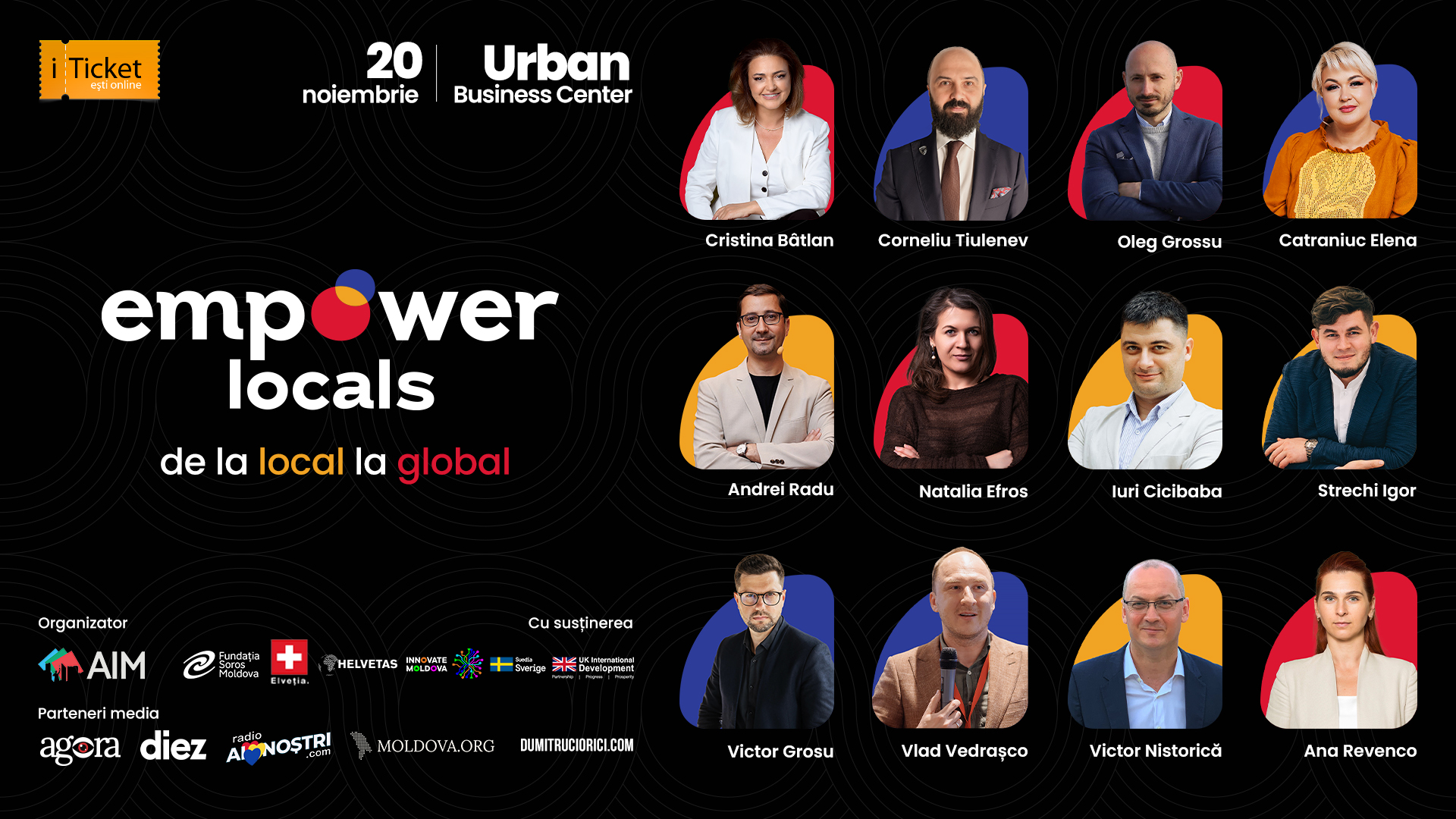 Conferința Empower Locals este realizată cu susținerea Fundației Soros Moldova, Elveției și organizației Helvetas Moldova prin Proiectul OPTIM, Suediei și Regatului Unit prin programul Innovate Moldova.
